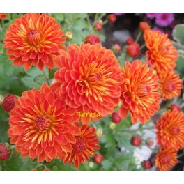 Chryzantema ,, Pipi'' -domiana zimująca w gruncie samokrzewiąca dorastająca do 30 wys. kwitnie od września , kwiat śred.4cm .Odmiana polecana na rabaty , obwódki .Obficie kwitnie pięknym rudo pomarańczowymi kwiatami .