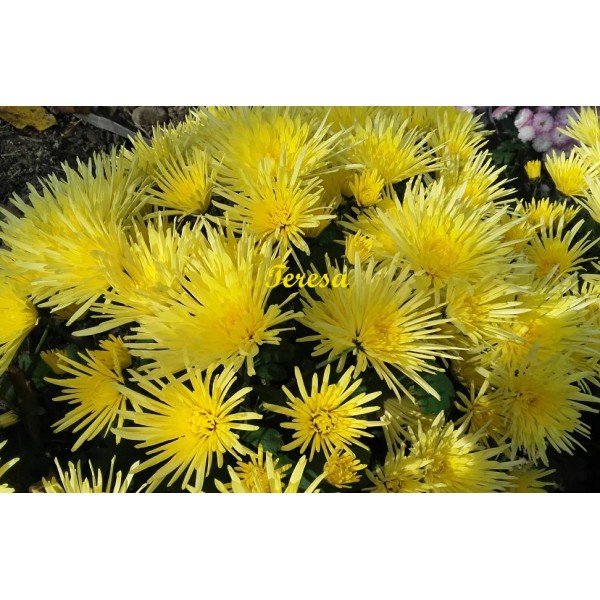 Chryzantema zimującaw gruncie - odmiana dorastająca do 50cm wys. kwiaty o płatkach igiełkowych ,zakwita we wrześniu .